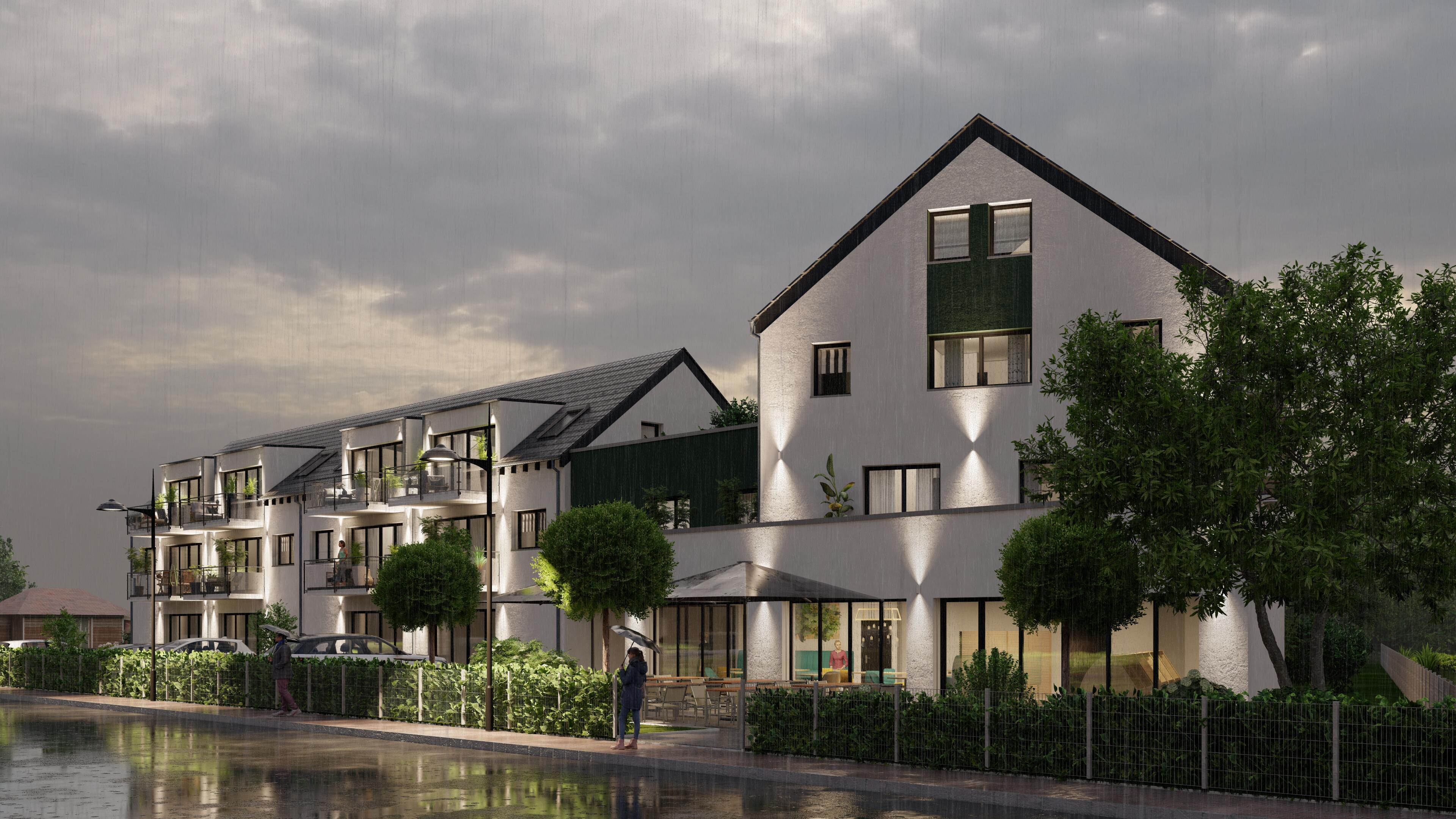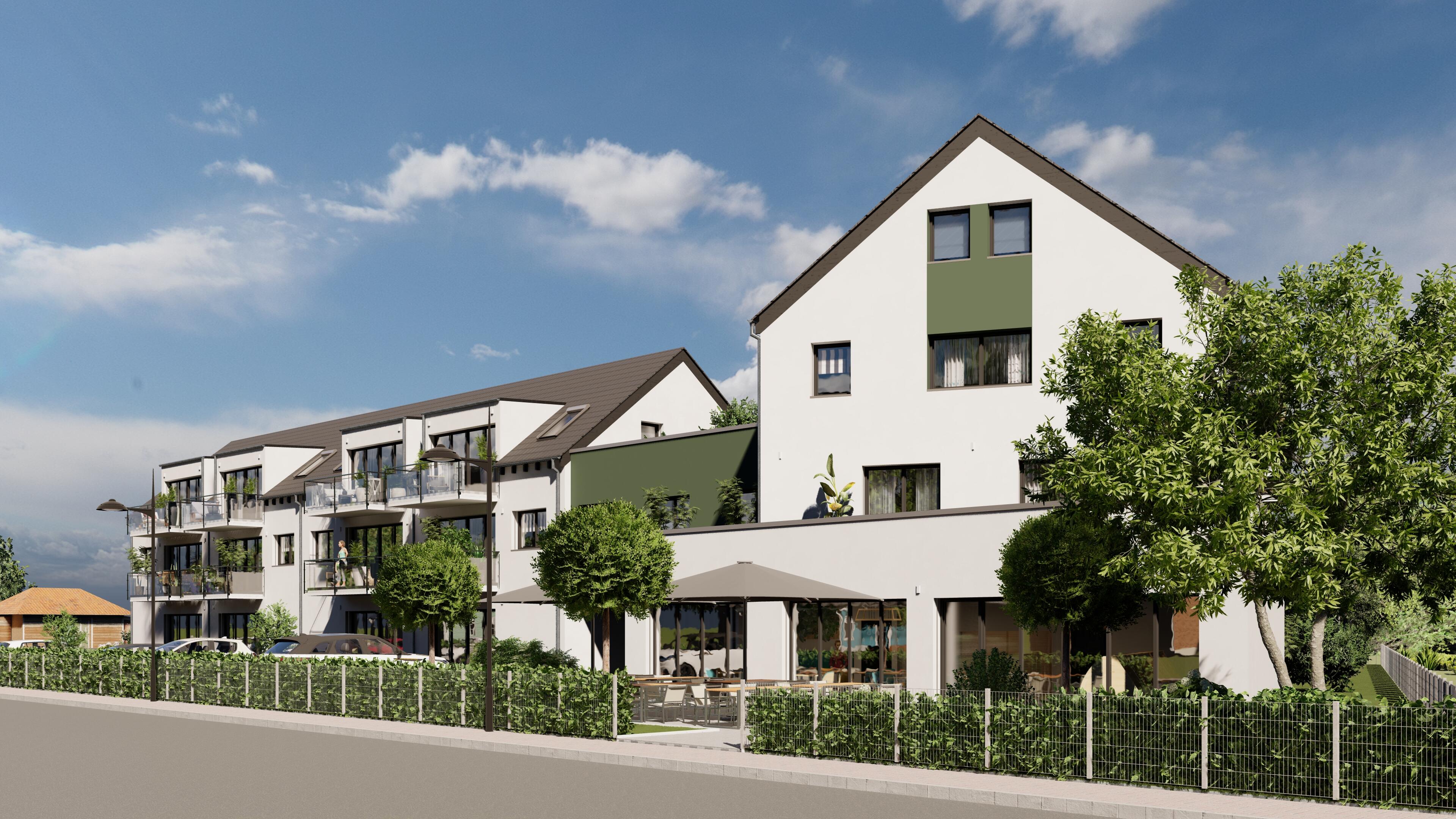 KfW 40 und nachhaltig zertifiziertes Wohn- und Geschäftsgebäude nach QNG-Plus (Qualitätssiegel Nachhaltiges Gebäude) mit 27 Wohneinheiten und 6 Gewerbeflächen.