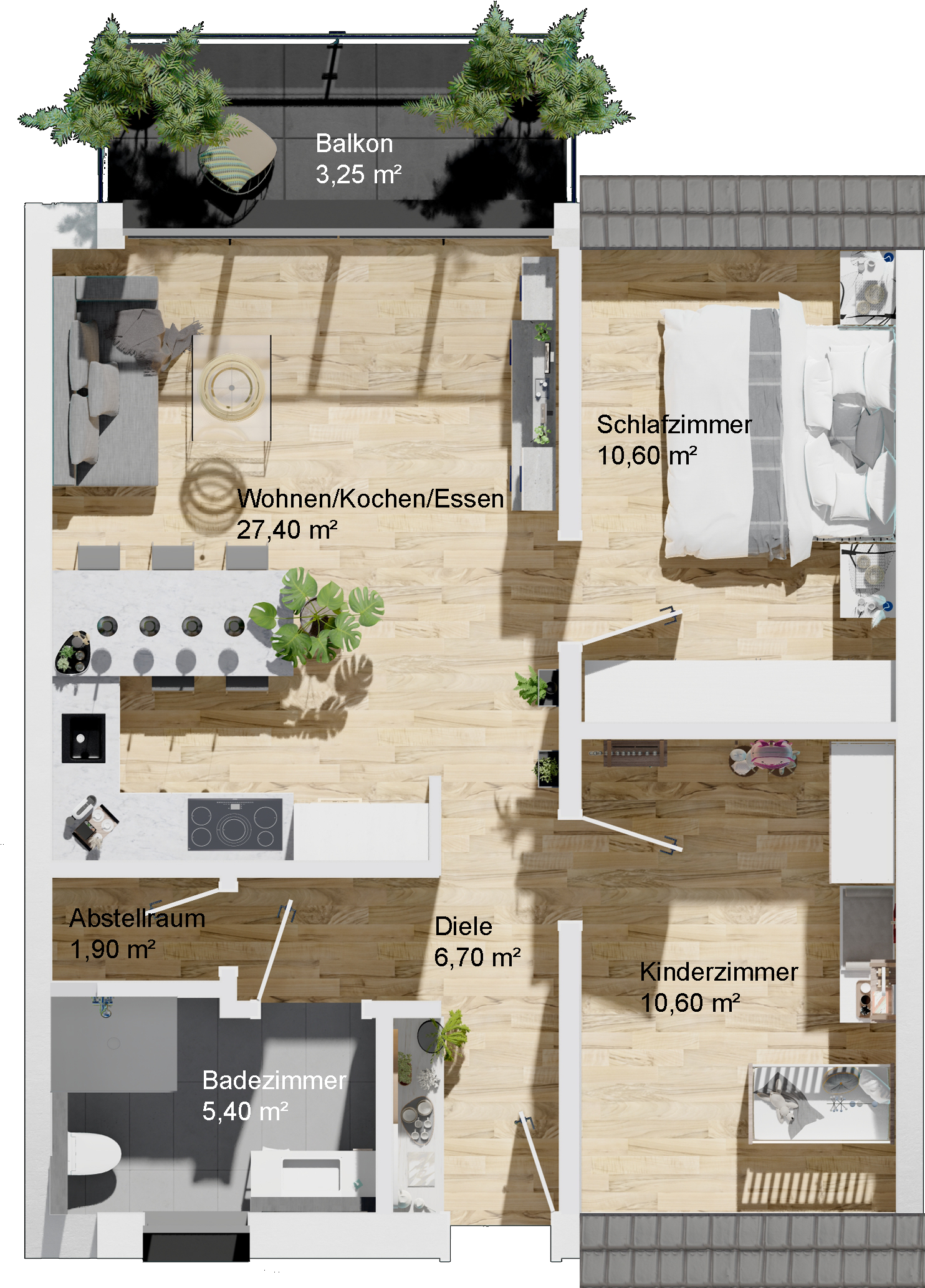 Wohn- und Geschäftsgebäude, Froschhausen Wohnung Nr. 17, Dachgeschoss (Nord)
