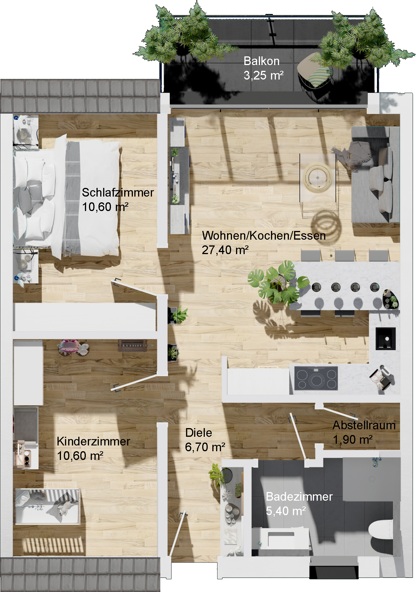 Wohn- und Geschäftsgebäude, Froschhausen Wohnung Nr. 18, Dachgeschoss (Nord)