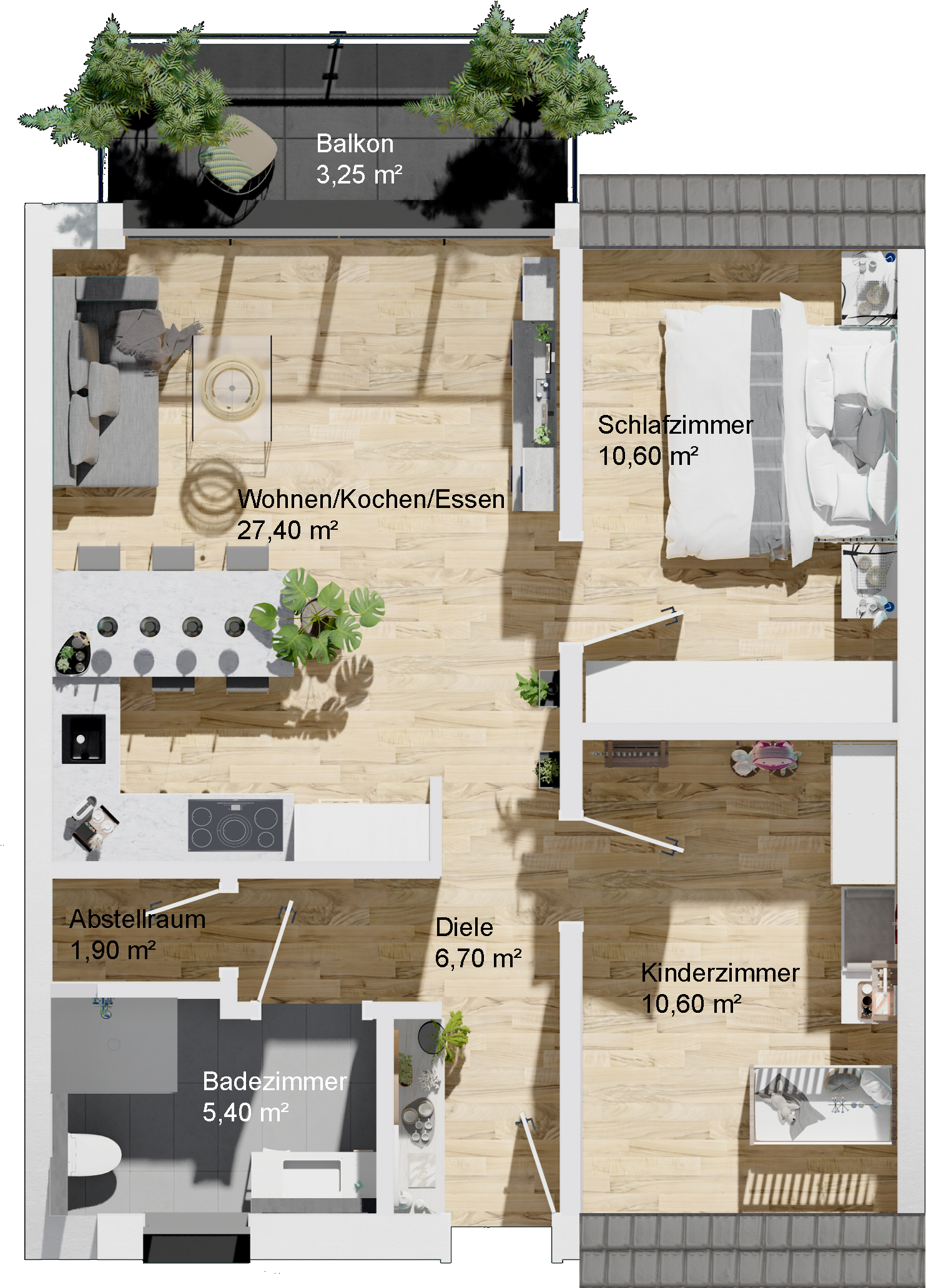 Balkon (50 %): 3,25 m²