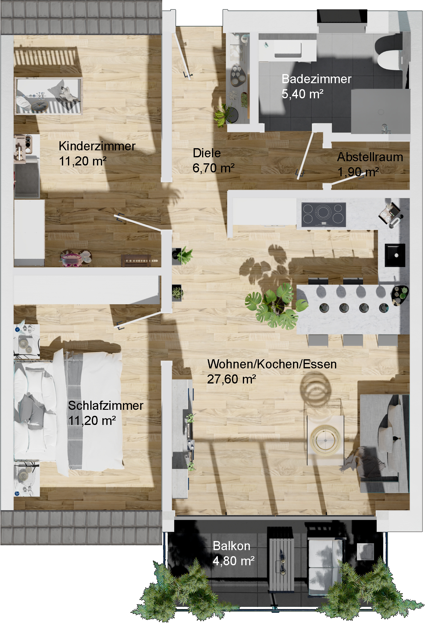 Wohn- und Geschäftsgebäude, Froschhausen Wohnung Nr. 24, Dachgeschoss (Süd)