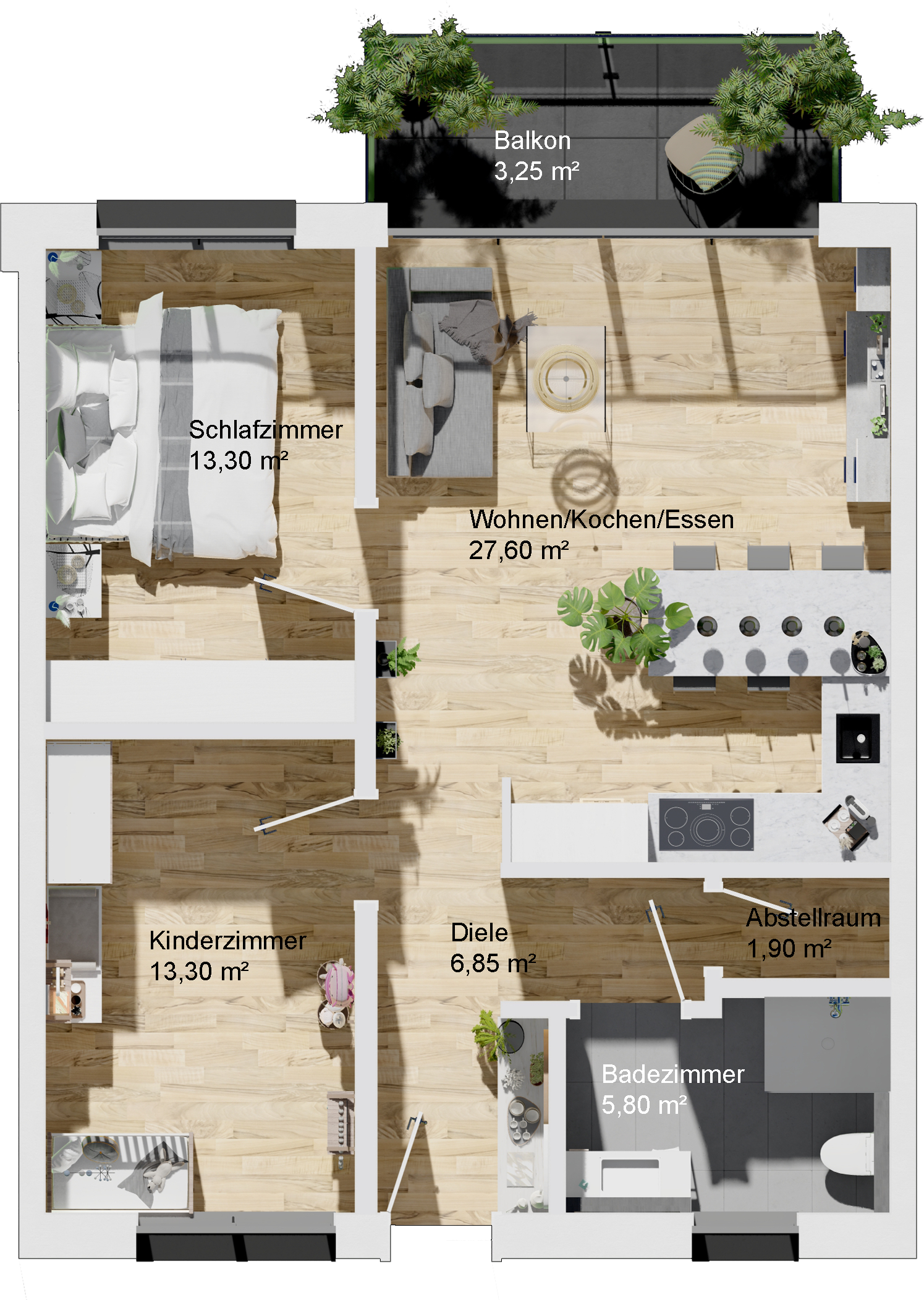 Wohn- und Geschäftsgebäude, Froschhausen Wohnung Nr. 4, 1. Obergeschoss (Nord)