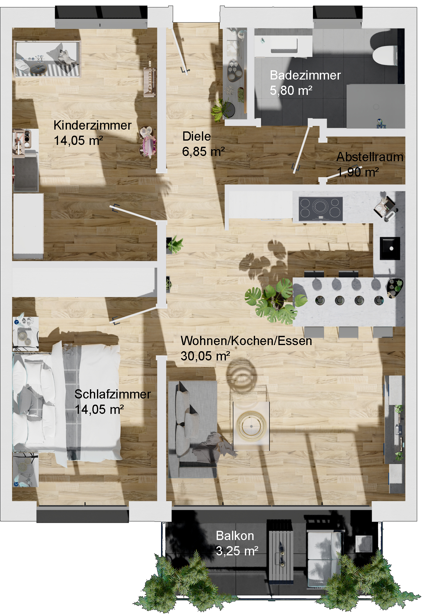 Wohn- und Geschäftsgebäude, Froschhausen Wohnung Nr. 7, 1. Obergeschoss (Süd)